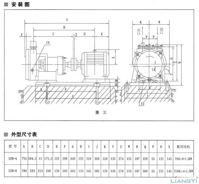 目前制造的本型號泵有:SZB-4、SZB-8。其中4(8)表示當水銀柱高為520毫米時的氣量(升/秒)。